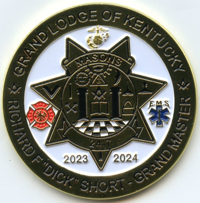 Starting in 2012, Veterans’ Pins have been important fundraisers for the Grand Masters of Kentucky. Worshipful Grand Master Christ Stout (2023-2013) designed and produced the first Grand Master’s Veterans’ Pin to raise money for veterans’ issues. The tradition continues with each Grand Master.
