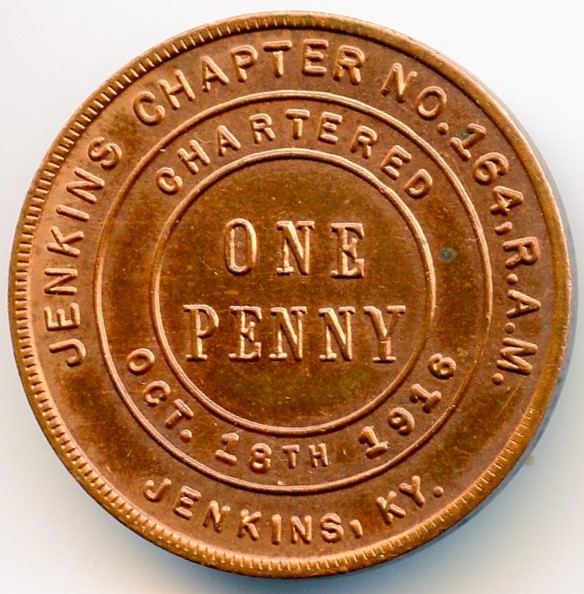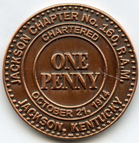The Obverse of the Jackson Chapter No. 160 Penny. The reverse of the Jackson Chapter No. 160 penny.The obverse of the penny for Jenkins Chapter No. 164. – G. A. Turner CollectionThe reverse of the penny for Jenkins Chapter No. 164. – G. A. Turner Collection.
