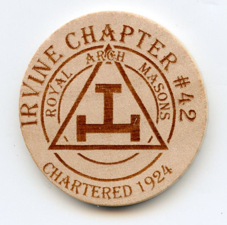 The obverse of Irvine Chapter #42’s 100th Anniversary token.The reverse of Irvine Chapter #42’s 100th Anniversary token.